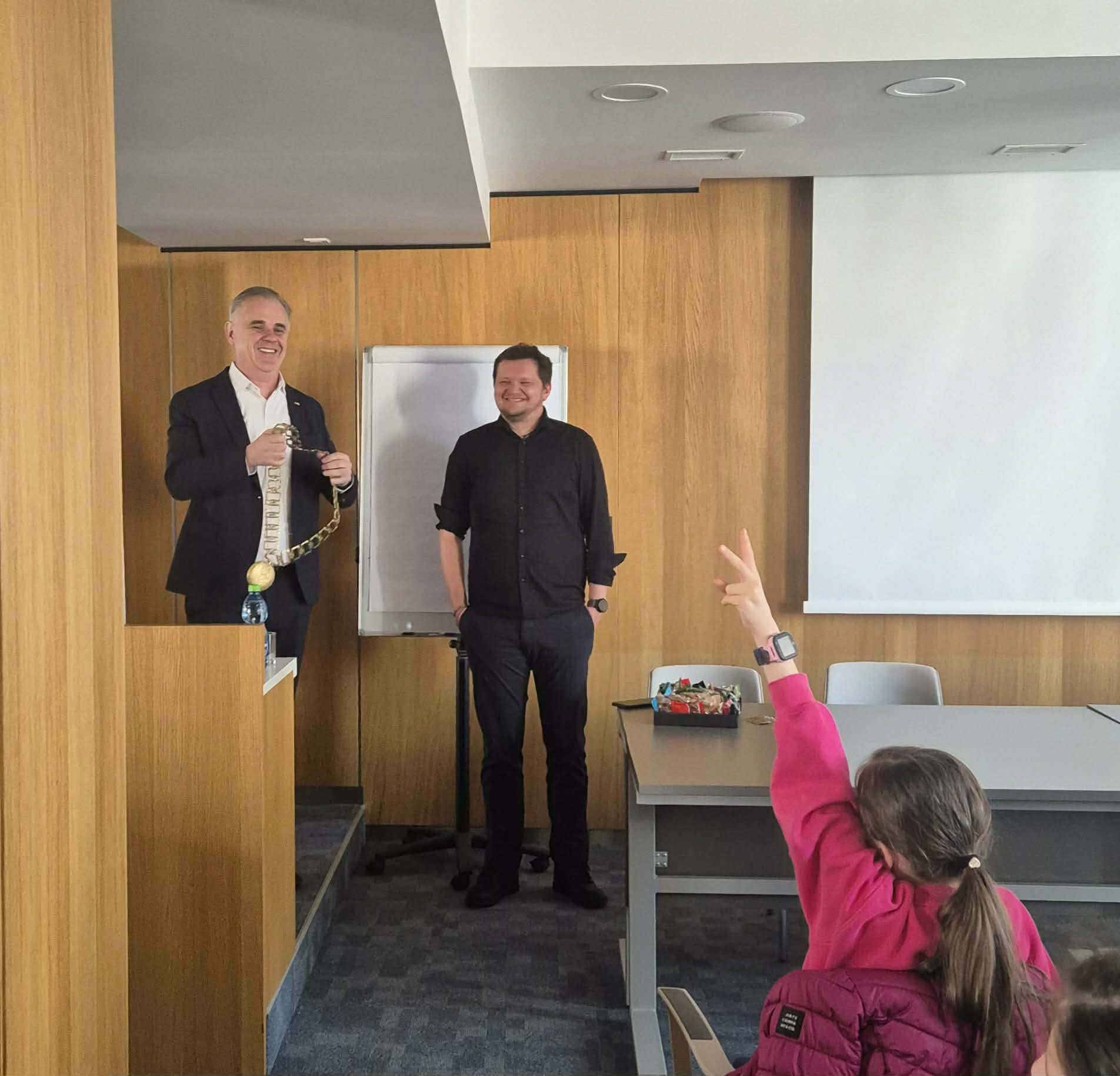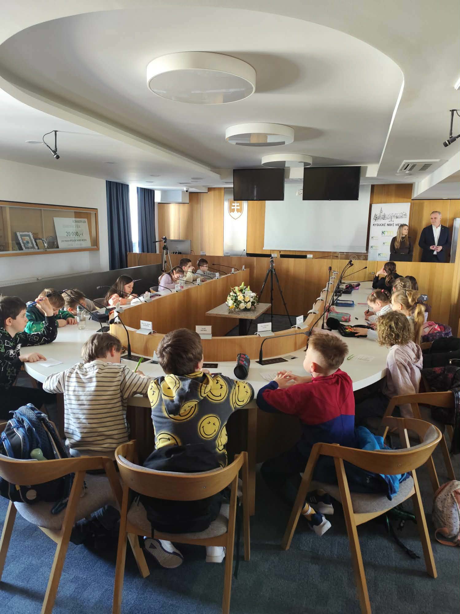 Vyvrcholením týždňa bola návšteva mestského úradu, kde mali žiaci jedinečnú možnosť stretnúť sa s vedením mesta – primátorom, zástupcom a vedúcou odboru školstva – s ktorými diskutovali o tom, ako funguje rozpočet mesta a na aké účely a projekty sa využívajú verejné financie. Popri tom si vyskúšali aj simuláciu mestského zastupiteľstva, kde zasadli na miesta mestských poslancov a rozhodovali o dôležitých otázkach. Súčasťou návštevy bola možnosť vžiť sa do role primátora/primátorky, pričom sami navrhovali vlastné zlepšenia pre budúce mesto a odprezentovali ich vedeniu.