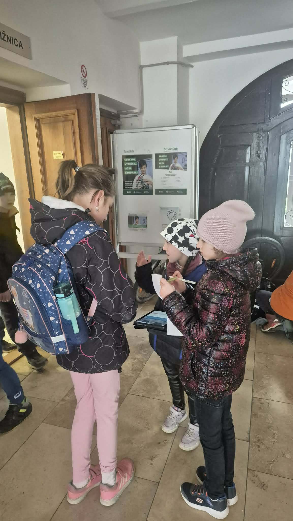 Už v knižnici začali „matematické prechádzky“, kde žiaci s tabletami v rukách objavovali mesto z inej perspektívy. Na každom zo stanovíšť riešili v skupinách logické a matematické úlohy.